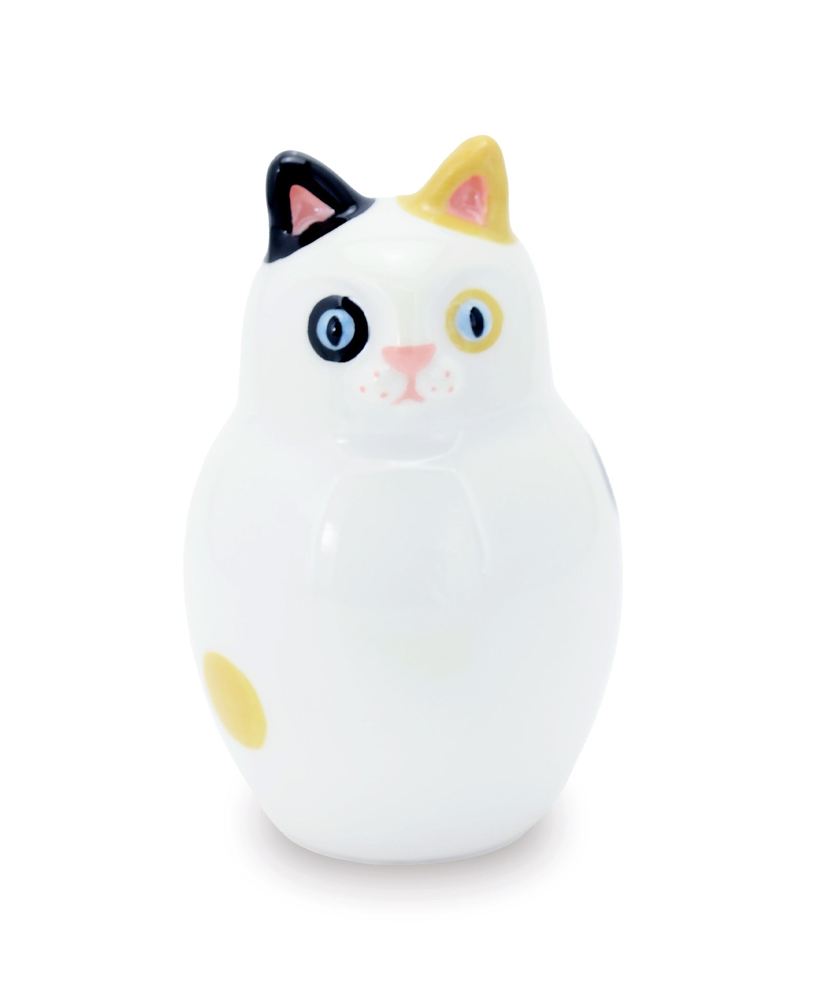 Color: white with orange and black dots, light-blue eyes